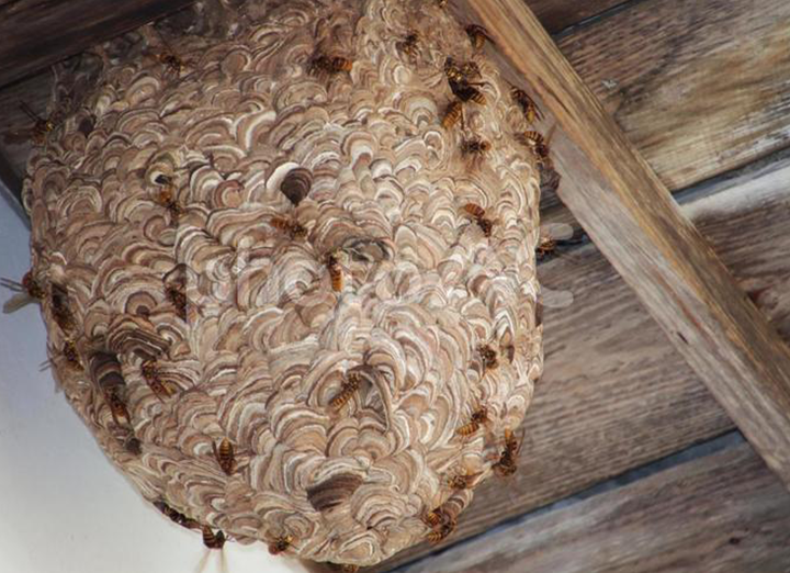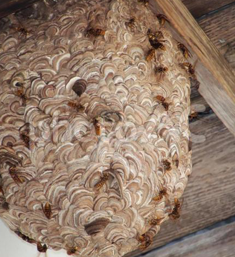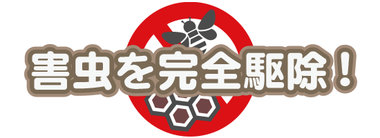 働きバチを、殺虫剤で噴霧処理したあと、巣に直接網をかけ、蜂が逃げないようにして、噴霧処理する。 蜂を全滅させたあと、巣を切り落とし、清掃消毒、薬剤噴霧で二度と蜂が来ないようにする。