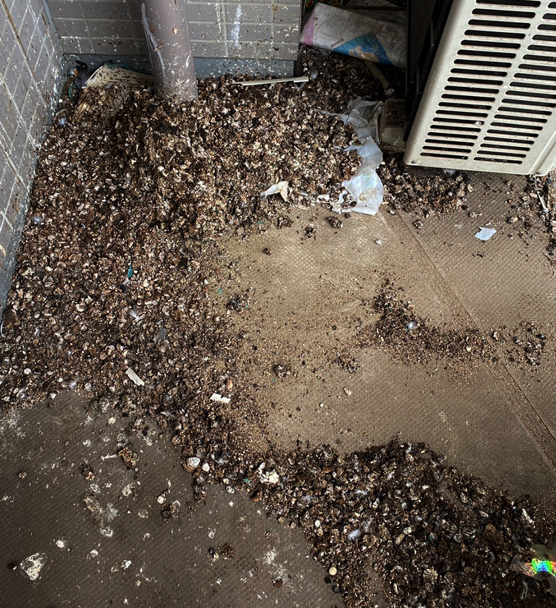 昨年11月頃から天井裏から足音やガリガリと齧っている音がするようになって、いくつか業者に相談したが完全駆除はできないと言われてしまい、このたび、SDSにご相談いただきました。調査させていただいたところ、ネズミが侵入、天井裏、床下に住み着いている形跡がございました。先ずは、煙を焚いて追い出し作業と粘着シートで捕獲作業を行わせていただきました。ネズミは僅かな隙間から侵入しますので入念に点検を行いながら封鎖工事も行いました。