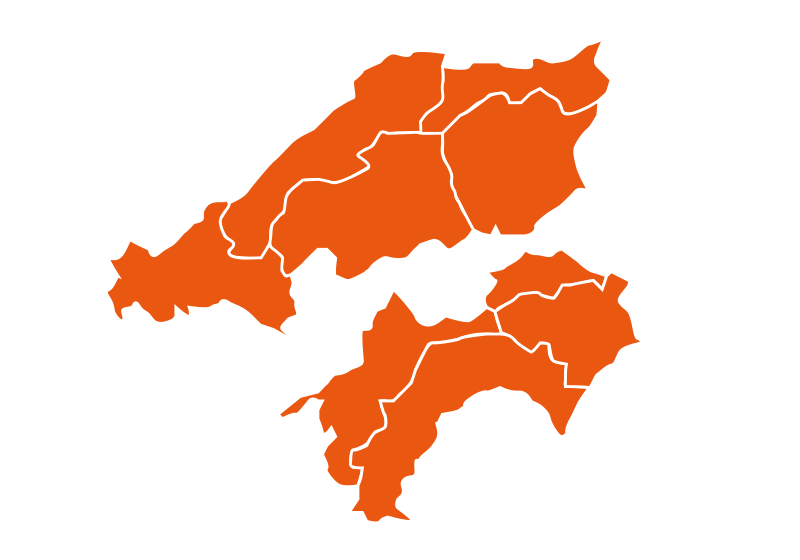 岡山県、広島県、山口県、鳥取県、島根県、香川県、愛媛県、徳島県、高知県