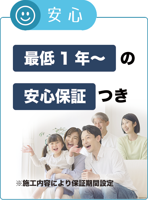 ※保証期間については築年数や施工内容などによって異なりますので、現地調査時にお伝えいたします。