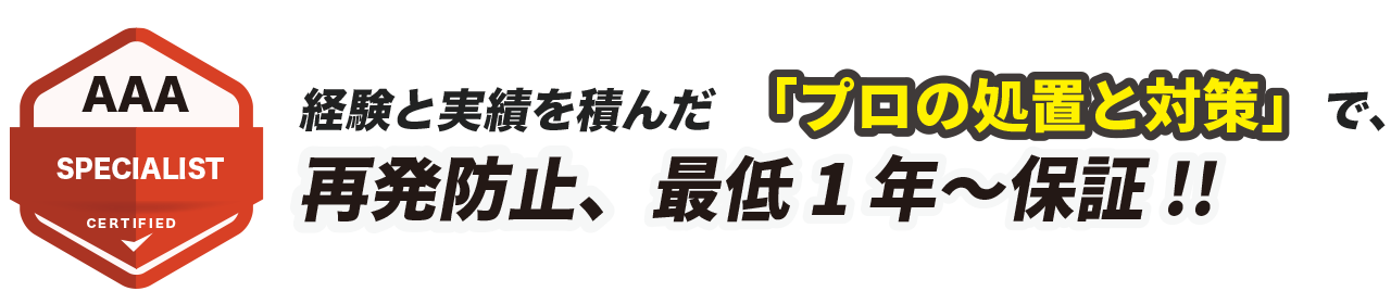 私たちとの関係は、施工を終えてもなくなりません。SDSはいつまでもあなたにとって頼れるパートナーで居続けたいと考えています。駆除してからも気楽にご相談いただける体制を整えているのでご安心ください! また、SDSは、最低1年〜の保証期間。もしも被害が再発した場合でも、保証期間内であればすぐに無償対応に駆けつけますのでご安心ください。